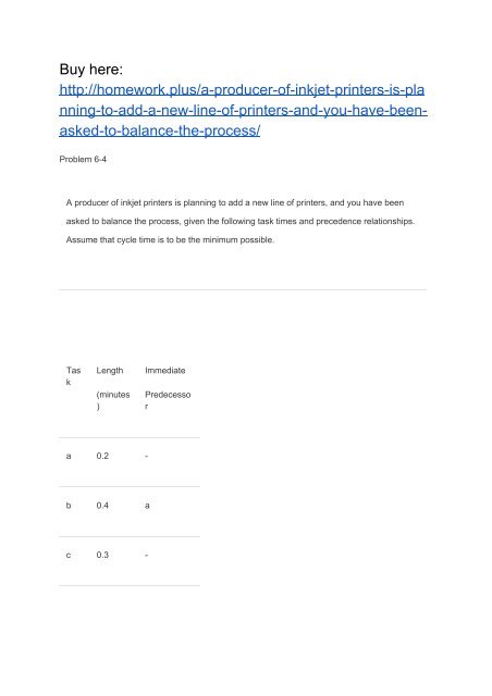 Check all flipbooks from karlkanona. A producer of inkjet printers is planning to add a new line of printers and you have been asked to balance the process given the following task times and precedence relationships. Do each of the following.